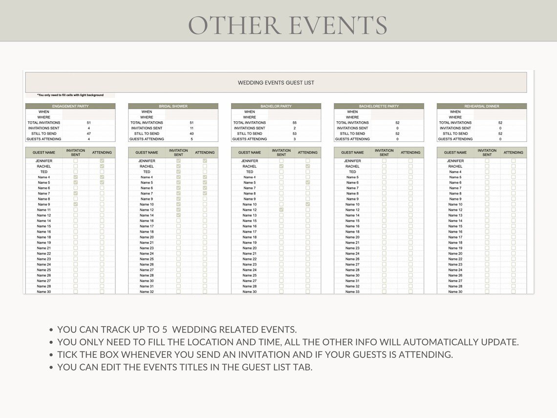 • Manage multiple wedding events like engagement parties, bridal showers, and rehearsals